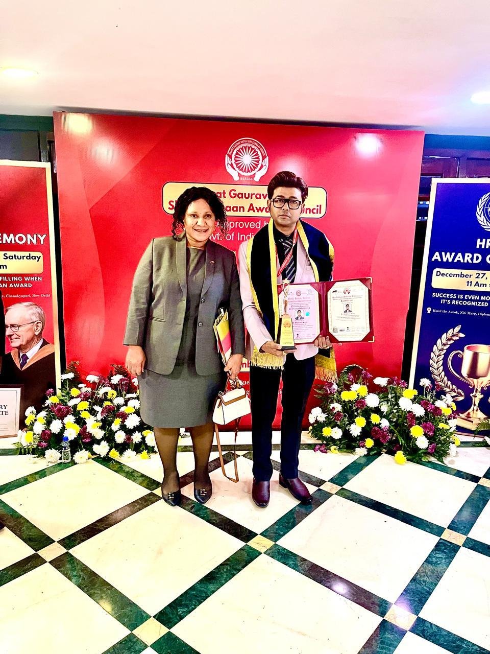 During the December 27 ceremony announcing his WHRPC appointment, Dr. Shantanu Sinha was conferred the prestigious “Rashtriya Ashoka Samman”, an honor approved by the Ministry of Corporate Affairs, Government of India.