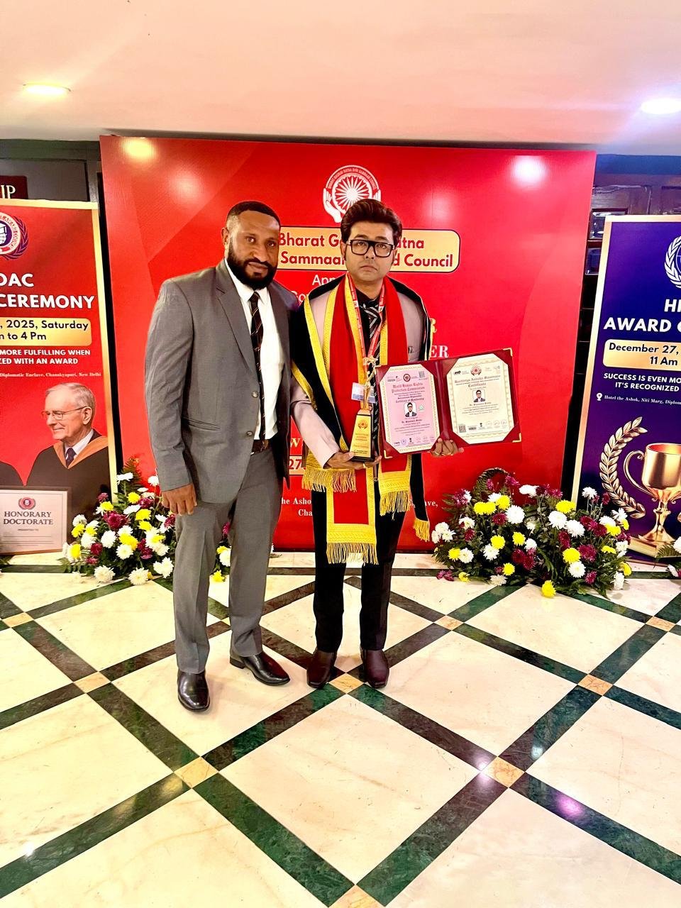 In 2021, he was conferred with an Honorary Doctorate — Doctorate in Philosophy (Ph.D.) in Social Work (Honoris Causa) — along with lifetime membership recognition from the World Human Rights Protection Commission. The honorary recognition was associated with international institutions including UNESCO, the British Council, IAEA, and the United Nations, acknowledging his contribution to social work and human rights advocacy.